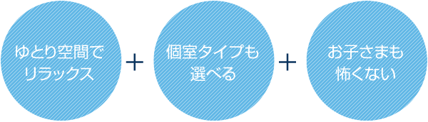 広々とした診療スペースは、圧迫感を感じないよう、セパレートタイプになっています。またプライバシー重視のための個室診療室もご用意。ご要望によりお選びいただけます。
